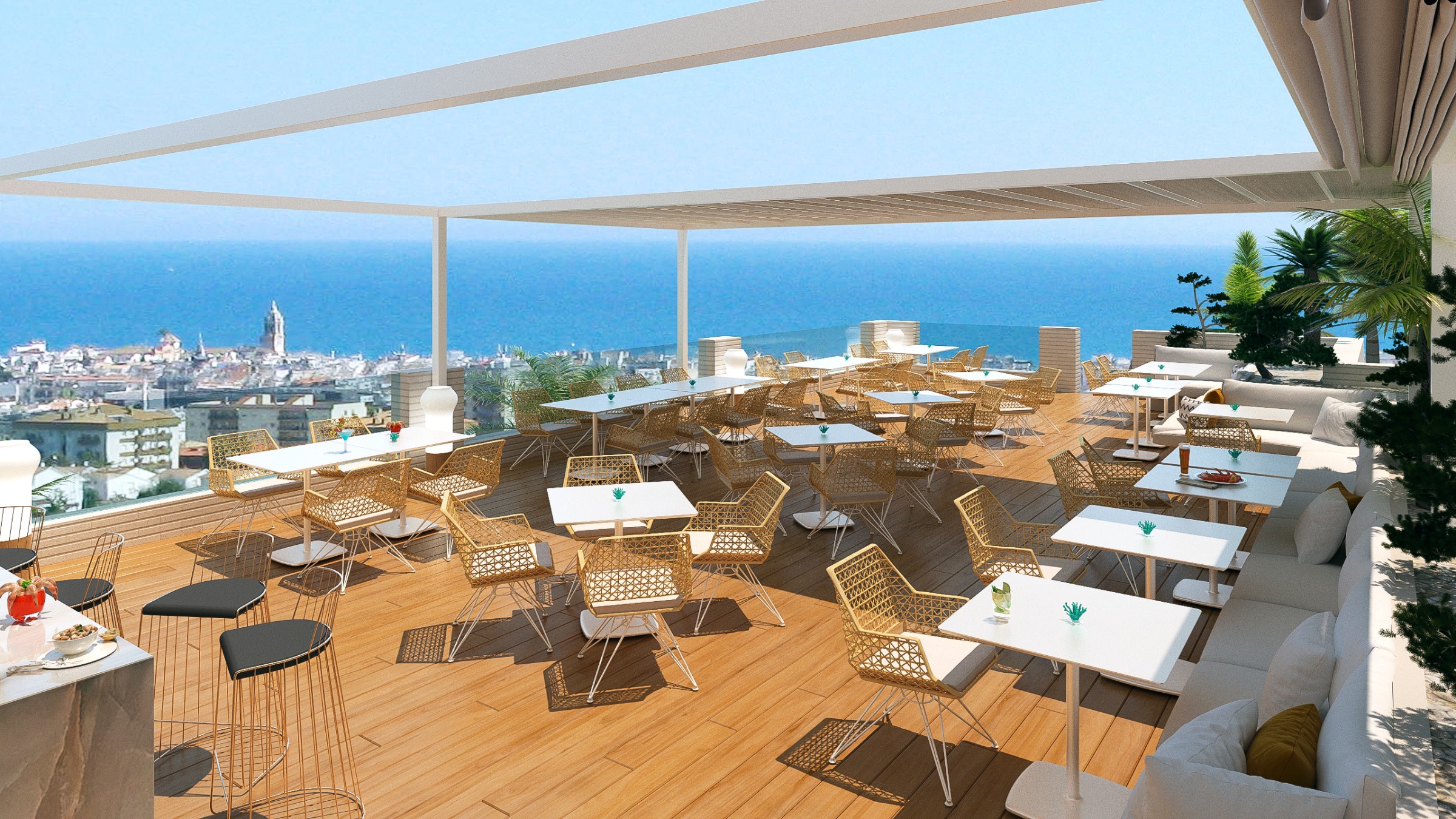 El Sitges Business Centre será un espacio moderno y funcional diseñado para autónomos y pequeñas empresas que buscan un entorno de trabajo dinámico y colaborativo. Con una superficie de 600 m², el edificio contará con espacios de coworking, una piscina y un restaurante con vistas al mar, creando un ambiente ideal para combinar trabajo, networking y bienestar en un solo lugar.